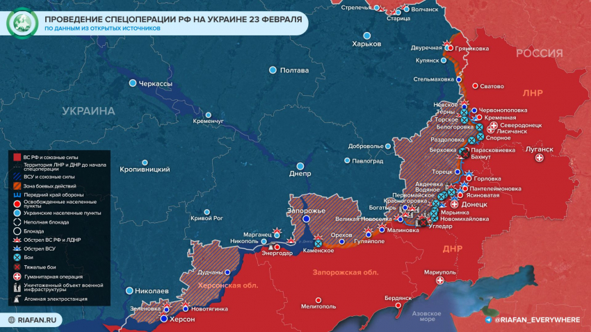 Обновленная карта военной операции на Украине 23 февраля 2023 года: Киев готовится к вторжению в Приднестровье