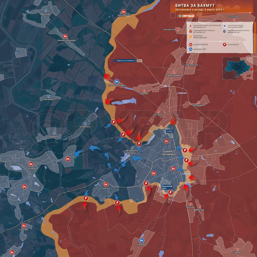 Битва за Бахмут: обстановка к исходу 4 марта 2023 года от «Телеграм-канала «Рыбарь»