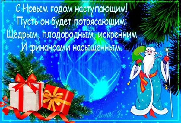 Поздравляю с уходящим годом, а на пороге Новый год! Он несет большие надежды и ожидания, пусть все задуманное свершится! Что раньше не сбылось — произойдет! Удача станет спутником и в профессиональных начинаниях, и в личной жизни! Крепкого материального благосостояния и отменного здоровья!