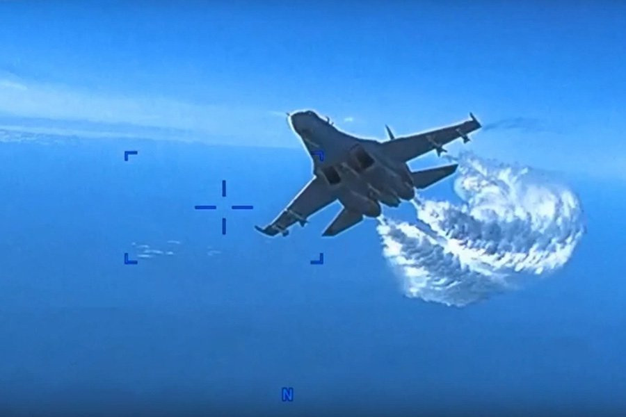 Власти США утверждают, что беспилотник упал после того, как его винт, расположенный в кормовой части корпуса, протаранил российский истребитель.