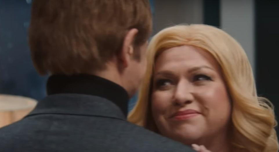 Хорошо поработали дизайнеры и над персонажами актером в фильме «Самоирония судьбы». В этой киноленте снялись многие известные российские актеры. Так, Филипп Киркоров предстал в образе Ипполита, внешне очень напоминая жениха Нади Шевелевой. Увидеть в кадре можно Ольгу Бузову и Тимура Батрутдинова, которые сидят за новогодним столом и пьют шампанское. Другой фрагмент пародии на любимую многими комедийную драму – Павел Воля в образе шведского посла на приеме у Ивана Грозного. Самого русского царя сыграл комик казахского происхождения Азамат Мусагалиев, и его артист изобразил вполне достоверно.