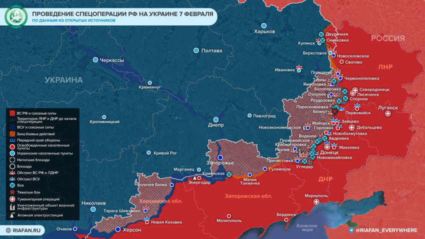 Обновленная новая карта боевых действий на Украине по данным на утро 8 февраля — Минобороны обновило новую карту боевых действий 8.02.202