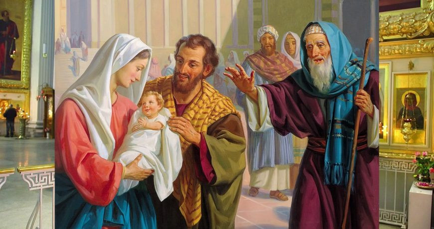 И когда он увидел, как Мария с Младенцем восходит по ступеням обители, вышел навстречу. И восприняв Младенца из рук Марии, произнес свою знаменитую песнь: