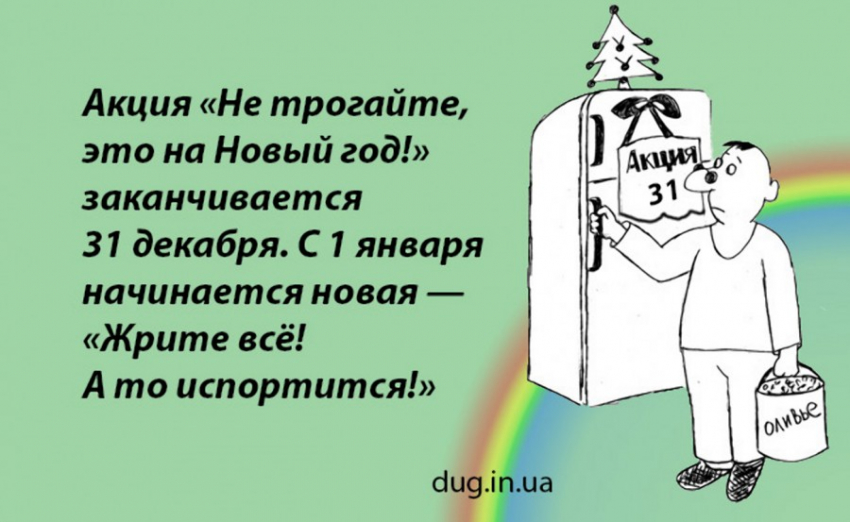 САМЫЙ ЖУТКИЙ ДЕНЬ — 30 ДЕКАБРЯ… Полный холодильник еды, а ничего нельзя есть — это всё на завтра… А хуже только 1 января — и выпивки и закуски море, а не лезет!!!