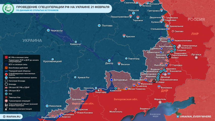Обновленная новая карта боевых действий на Украине по данным на утро 22 февраля — Минобороны обновило новую карту боевых действий 22.02.2023