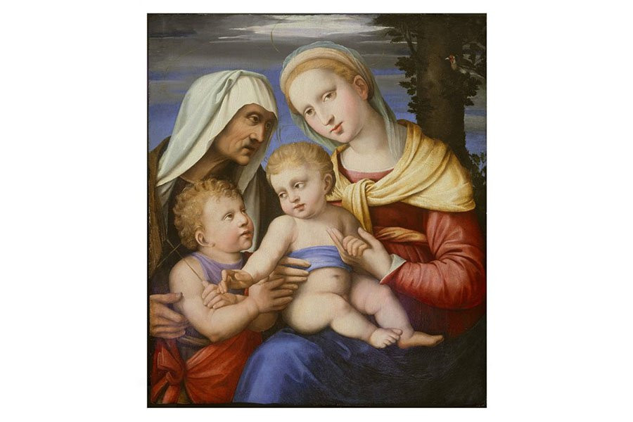 «Мадонна Флаже» изображает Марию, держащую младенца Иисуса, вместе со своими двоюродными братьями Елизаветой и молодым святым Иоанном Крестителем.
