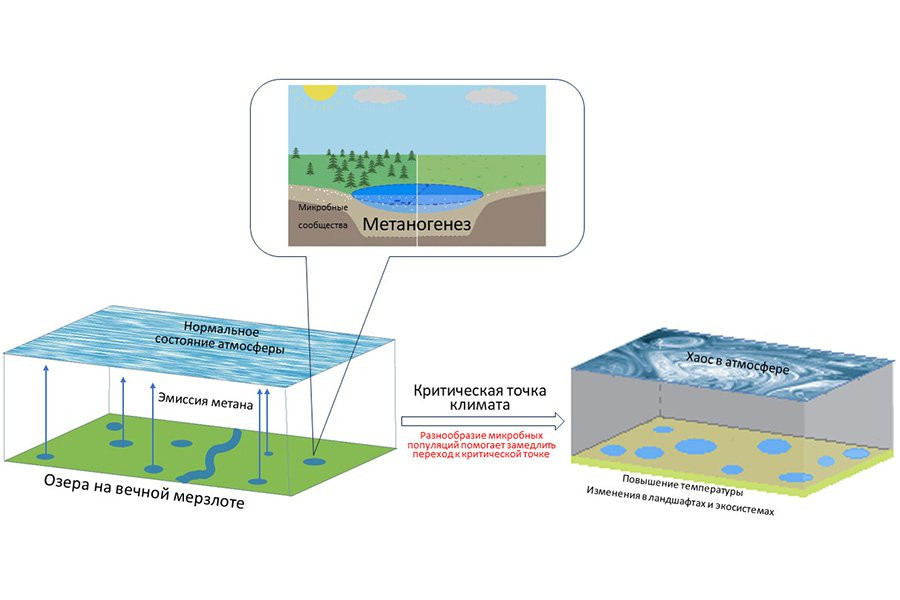 Ученые выяснили, что высокое разнообразие микроорганизмов, населяющих зону вечной мерзлоты, может значительно снизить скорость потепления атмосферы у поверхности Земли. По мере таяния многолетнемерзлых грунтов микробы начинают выделять метан и, если видов бактерий мало, в определенный момент произойдет массовый выброс этого парникового газа. Высокое же видовое богатство приведет к меньшему — в масштабе нескольких градусов — нагреву воздуха планеты Результаты исследования, поддержанного грантом Президентской программы Российского научного фонда (РНФ), опубликованы в журнале Chaos, Solitons & Fractals.