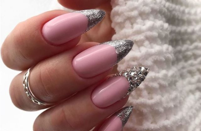 В этом случае также предпочтение отдается розово-голубой гамме, которая очень эффектно выглядит в блестящем варианте и креативном дизайне.