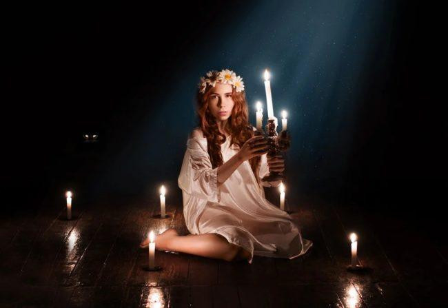 Еще для одного ритуала представительнице прекрасного пола следует сесть между двумя зеркалами в темной комнате со свечой. Далее нужно вглядеться в отражения двух зеркал. В них можно рассмотреть лицо будущего супруга.