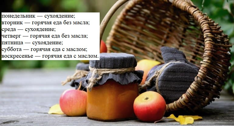 До 19 декабря сухоядения нужно придерживаться только дважды в неделю, то есть в среду и пятницу. Горячие блюда, но только без масла, можно есть по понедельникам. Во все остальные дни допускается употребление рыбы.