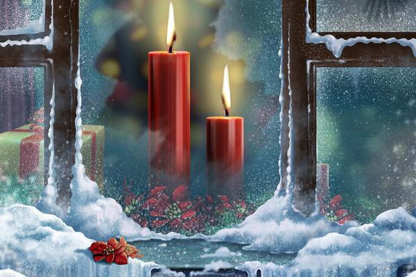 Единственным источником света должны быть свечи. Лампы, фонари и т. п. не подойдут.