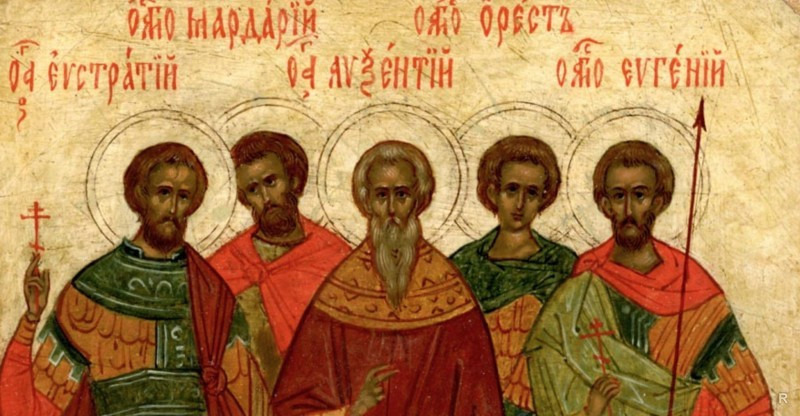 В этот день православные верующие почитают память иноков Евстратия, Авксентия и Аркадия, которые пострадали за преданность своей веры во Христа. Первым подвергся жестоким пыткам Авксентий, его язычники бросили в темницу. Евстратий, глядя на смелость и выдержку заключённого, признался, что является христианином, его постигла та же участь. Обоих впоследствии казнили. В дальнейшем во Христа уверовали молодой воин Орест и некий простолюдин Мардарий, которых в результате тоже приговорили к смерти.