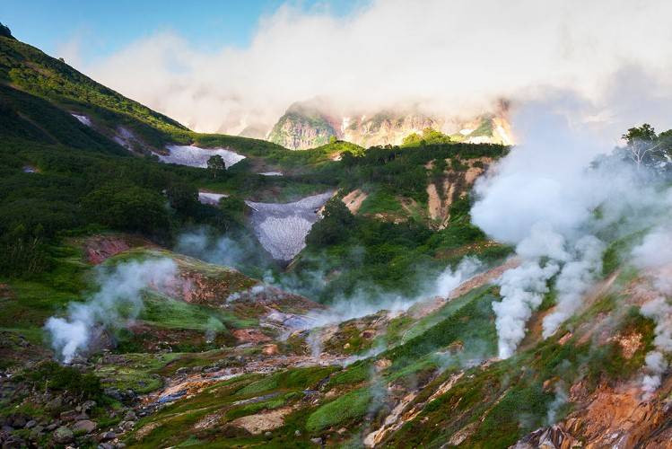 — Увидеть десятки гейзеров и восстановить силы в горных источниках — экскурсия с остановками в Долине гейзеров и в долине реки Налычева. Цена от 50 тысяч рублей для взрослых. Проходит с мая по июнь. Долина гейзеров труднодоступна, на ее территории действует заповедный режим: сходить со специальных деревянных настилов запрещено. Но эти ограничения нужны, чтобы заповедник оставался во всем великолепии для следующих поколений, а гости не пострадали. Туристы увидят извержения гейзера Большого, который выбрасывает кипяток на высоту до 10 метров, и понаблюдают за другими гейзерами. На второй остановке, в природном парке «Налычево», гости полюбуются на действующие и потухшие вулканы, отдохнут в горячих источниках и, возможно, увидят бурых медведей и белоплечих орланов.